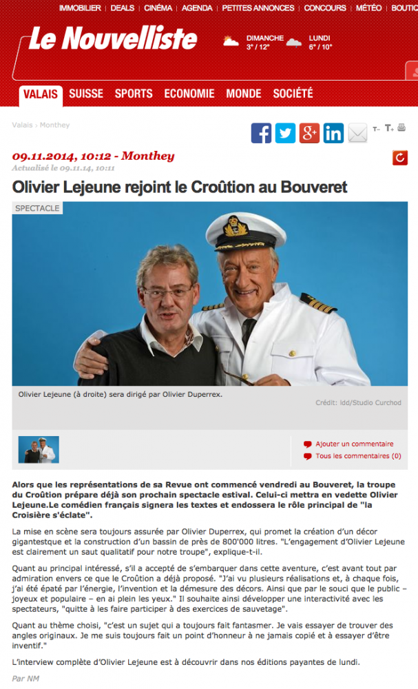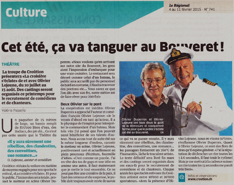 Le Croûtion s’offre une croisière avec Olivier Lejeune pour son spectacle d’été 2015 !!