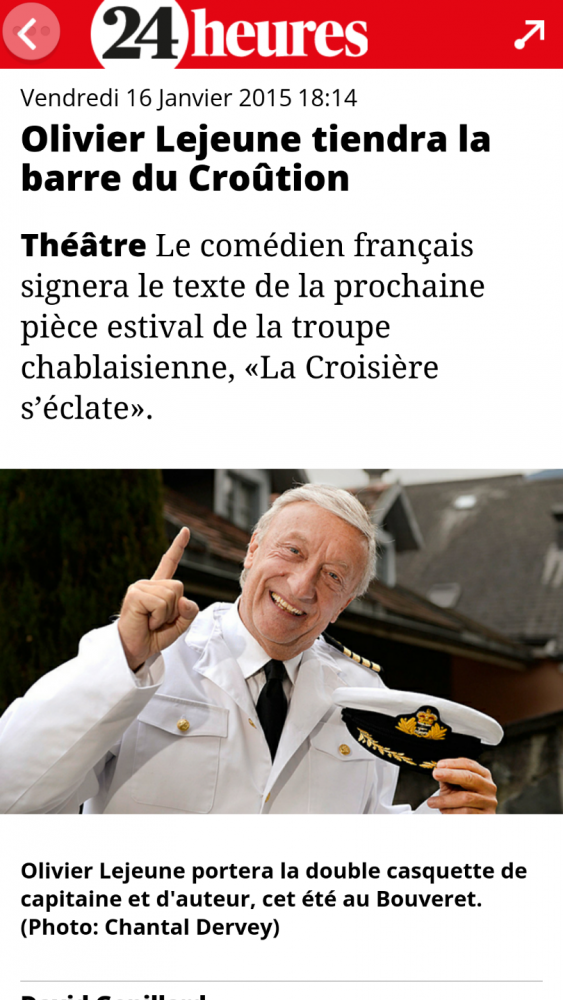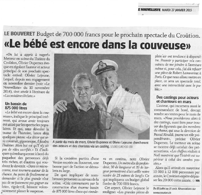présenté son idée de croisière. Est née une belle complicité théâtrale qui se concrétisera l’été prochain